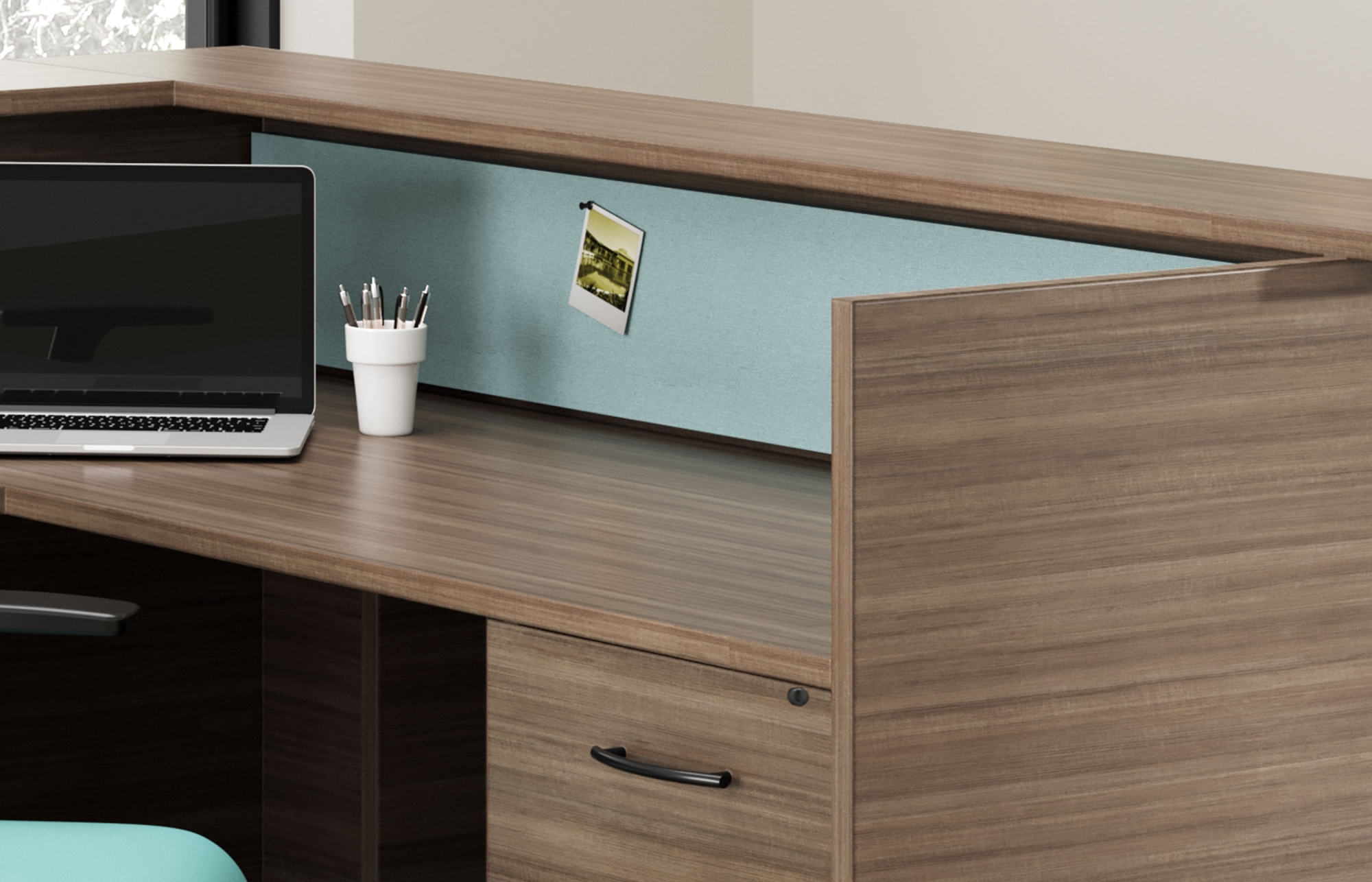 Canvas Reception shown in Studio Teak with Momentum Lana Airy Tackboard.