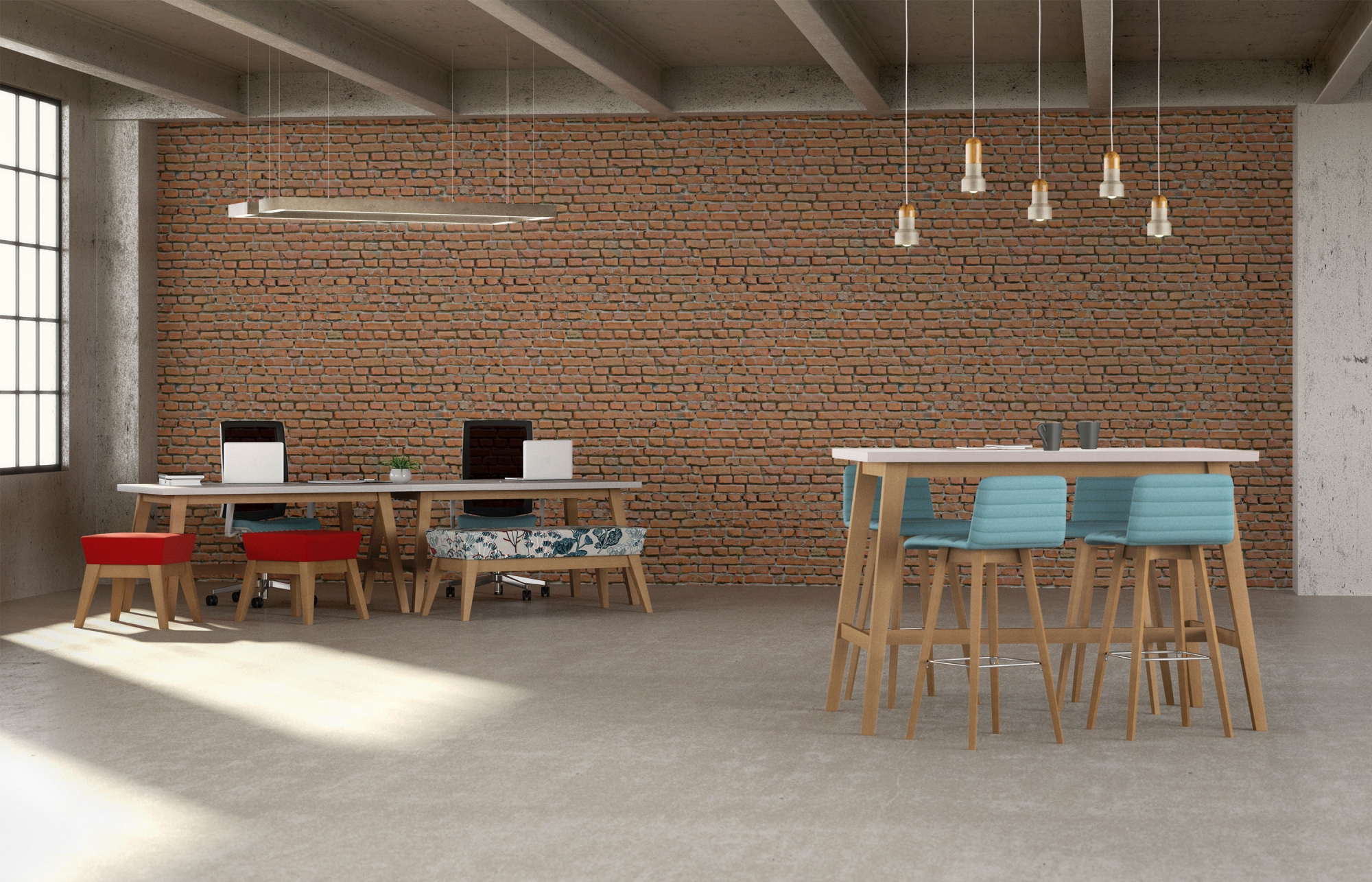 Natta benches, stools, and tables easily work in conjunction with other products, like KickStart Lounge, to create stylish and high-performing spaces.
